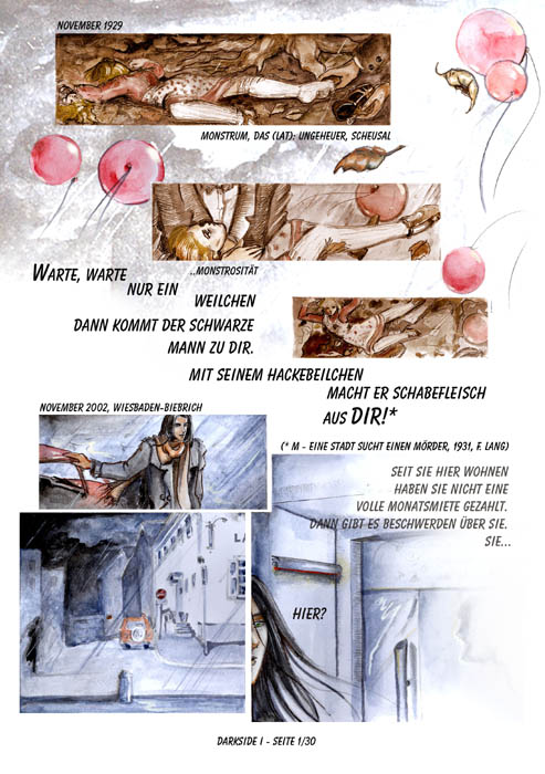 Die Reproduktion des Comics Darkside- Puppetmaster und Ritual. Damit wurde am europäischen Comicwettbewerb von Arte/Glénat teilgenommen.